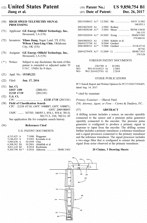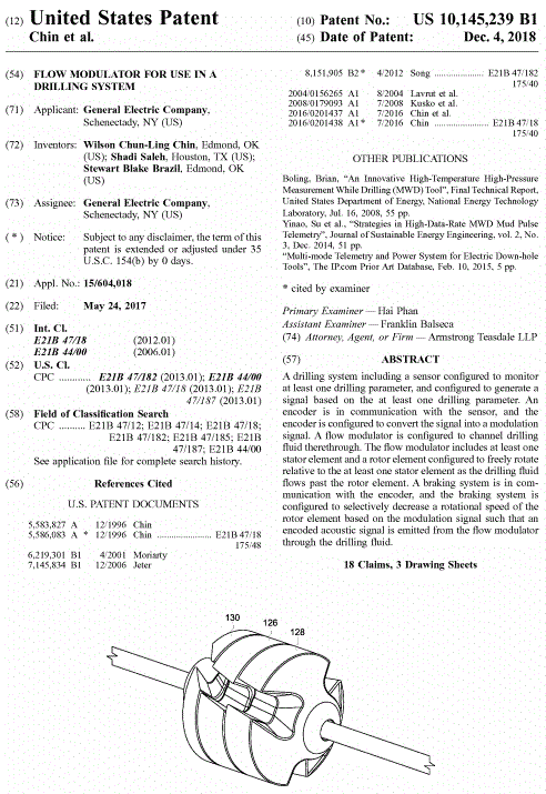 General Electric's wind tunnels at its Oklahoma Oil & Gas Technology Center and Shanghai, China locations are second to none. While we cannot divulge details, our latest patents above shed insight on "cool" MWD signal sources to come. The above inventions disclose a new siren that, for like rotation and flow rates, produces twice the signal found in existing sirens and simu, implying high data-rate and deep hole capabilities.