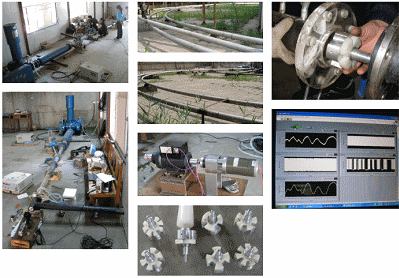 Sirens are known to jam, turning to a closed position that blocks oncoming mud and introducing operational problems. The very first use of wind tunnels led to Schlumberger's "stable open" (tapered rotor downstream) siren in U.S. Patent 4,785,300, quickly followed by numerous industry innovations in optimizing downhole tools and increasing signal processing throughput. Read about our innovations in MWD Signal Analysis, Optimization and Design (co-authored with CNPC) where test methods, historical perspectives and mathematical algorithms are described in detail. The above photo shows generic sirens, "turbosirens" that spin without motor assistance, very low torque, miniature self-spinning sirens driven at minimal hair dryer flow rates (movies available on request). An interesting survey of test methods appears below.