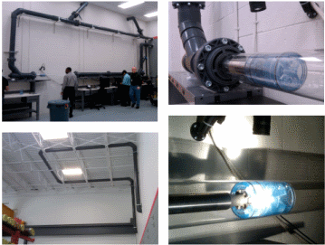 The impressive facility at Gyrodata's Houston headquarters was initially designed to solve severe erosion problems with its rotaty pulsers. Neutrally buoyant helium filled soap bubbles pumped from a centrifugal separator flow past the rotating valve. Rapid impingements are photographed with a high-speed camera, saved in massive storage devices, and broadcast to engineers worldwide for real-time collaboration. Geometric modifications using modeling clay are quickly evaluated, results are incorporated into fluid modeling software, and prototypes are quickly drawn and 3D printed for further wind tunnel evaluation.